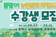 광장일보 박균현 기자 | 평택시는 오는 4월부터 농업기술센터에서 도시민의 정서적 안정과 농촌 문화 가치 확산을 위한 '2026년 봄맞이 농촌문화체험 프로그램’을 운영한다. 이번 프로그램은 자연 재료를 활용해 도시민들이 일상 속 스트레스를 해소하고 농업·농촌을 친숙하게 느낄 수 있도록 기획됐으며, 3일부터 16일까지 교육생을 모집한다. 교육 과정은 실습 중심의 4개 강좌로 구성되어 시민들에게 다채로운 즐거움을 선사할 예정이다. 주요 내용은 △평택 특산물을 활용한 로스팅 및 홈카페 메뉴 만들기 △버려지는 자원을 재활용하는 리사이클링 양말목 공예 △천연 아로마 에센스로 화장품을 직접 만드는 힐링 아로마 클래스 △나무에 온기를 담아내는 현대 우드버닝 등 자연 친화적인 취미 활동으로 꾸며진다. 특히 이번 교육은 어렵게 느껴졌던 ‘탄소중립’이나 ‘지역 상생’이라는 가치를 평택 특산물로 맛있는 메뉴를 만들고 예쁜 소품을 빚어보는 활동에 녹여내, 시민들이 일상에서 즐겁고 친근하게 경험할 수 있도록 구성했다. 평택시 농업기술센터 관계자는 “이번 봄맞이 프로그램이 시민들에게는 배움의 즐거움과 휴식을, 농촌에는 활력을