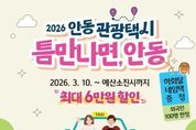 광장일보 주재영 기자 | 안동시가 뚜벅이 여행객들의 교통 불편을 해소하고 맞춤형 자율여행을 지원하기 위해 ‘안동 관광택시’ 활성화 사업을 추진한다. 시는 ‘2026 경북 방문의 해’를 기념해 내·외국인 관광객 1팀당 3만 원의 요금 할인 혜택을 제공한다. 특히 3월 10일부터 예산 소진 시까지 진행되는 ‘틈만나면, 안동’ 캠페인 기간과 사계절 축제 기간에는 추가로 3만 원이 할인돼 이용객은 최대 6만 원까지 요금 할인을 받을 수 있다. 또한 안동 벚꽃축제(4. 1. ~ 4. 5.)와 경북도민체육대회(4. 3. ~ 4. 6.)가 열리는 4월에도 봄맞이 요금할인 프로모션을 진행해 최대 60,000원의 요금을 할인, 관광객 유치에 나설 계획이다. 안동 관광택시의 기본요금은 5시간 기준 12만 5천 원(승합 30만 원)이다. 각종 할인 이벤트와 예약 안내, 추천 관광코스 등 상세한 내용은 안동 관광택시 누리집 또는 (사)안동시관광협의회를 통해 확인할 수 있다. 안동시 관계자는 “요금 할인뿐만 아니라 기사 역량 강화 교육과 차량 관리 등 서비스 품질 향상에도 만전을 기하고 있다”며, “앞으로도 체류형 관광도