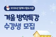 광장일보 이현나 기자 | 동해시는 2026년 겨울방학을 맞아 관내 초등학생을 대상으로 동해시립도서관에서 겨울방학 특강 프로그램을 운영한다고 밝혔다. 이번 특강은 1월 19일부터 1월 23일까지 발한도서관, 북삼도서관, 꿈빛마루도서관에서 운영되며 북트레일러 크리에이터, 뚝딱! 과학 탐험대, 겨울나라 도자기 공방 등 총 6개 과정, 66명을 모집할 계획이다. 접수는 1월 6일 오전 10시부터 동해시립도서관 홈페이지를 통해 선착순으로 진행되며, 신청은 홈페이지 내 독서문화 → 프로그램 신청 메뉴를 통해 가능하다. 김은서 평생학습과장은 “이번 겨울방학특강을 통해 지역 어린이·청소년들이 다양한 창작·독서 체험을 경험함으로써 창의력과 사회성 향상에 도움이 될 것”이라고 말했다. 재료비를 제외한 수강료는 무료이며, 세부 내용은 동해시립도서관 홈페이지에서 확인할 수 있다. 기타 문의사항은 발한도서관, 북삼도서관, 꿈빛마루도서관으로 문의하면 된다.