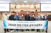 광장일보 주재영 기자 | 아산시의회는 11월 19일 오후 2시 의장실에서 양천구의회와 의정 교류 간담회를 개최하고, 예산심의 운영 방식과 지방의회법 주요 내용까지 폭넓게 공유하며, 의정 현안을 함께 논의했다. 이날 간담회에는 홍성표 의장을 비롯해 오해정 의회운영위원장을 포함한 양천구의회 의원 및 직원 13명이 참석했고 의정활동 자료 수집과 예산심의 절차, 지방의회법 운영 사례 등을 공유하며 특화사업 추진 현황을 벤치마킹하고 의정 교류를 강화하기 위해 마련됐다. 간담회는 △홍성표 의장의 인사말 △의회 운영 및 특화사업 추진 현황 공유 △기념품 전달 △청사 시설 견학 및 기념촬영 순으로 진행됐다. 홍성표 의장은 “아산시의회를 방문해 주신 양천구의회 의원 여러분을 진심으로 환영한다”며 “오늘의 교류가 서로의 의정 경험과 우수사례를 배우는 뜻깊은 자리가 되길 바라며, 앞으로도 양 의회가 긴밀한 협력 관계를 지속해 나가길 기대한다”고 말했다. 이어 양천구의회 의원들은 “아산시의회의 다양한 운영 방식과 신청사를 둘러볼 수 있어 매우 유익한 시간이었다”며“이번 교류를 계기로 양 의회가 지속적으로 협력하고 지방자