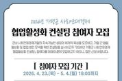 광장일보 주재영 기자 | 가평군이 사회연대경제 조직 간 협업 활성화를 위해 ‘2026년 사회연대경제 협업활성화 컨설팅’을 추진하고, 참여 조직을 5월 4일까지 모집한다. 이번 컨설팅은 지역 문제 해결을 위한 협업 기반 사업모델을 발굴하고, 조직 간 네트워크를 구축해 실제 협업사업으로 이어지도록 하기 위한 것이다. 모집 대상은 관내 사회적기업, (사회적)협동조합, 마을기업 등 사회연대경제 조직으로 10개소 내외를 선정할 예정이다. 교육은 오는 5월 11일부터 15일 중 3일간 음악역1939 세미나실에서 진행된다. 프로그램은 사회연대경제와 협업에 대한 이해를 바탕으로 △협업 아이디어 발굴 △팀 프로젝트 운영 △사업모델 설계 및 발표 등 실무 중심 과정으로 구성된다. 특히 참여 조직 간 교류를 통해 공동사업으로 발전 가능한 협업 모델을 도출하는 데 중점을 뒀다. 군은 이번 컨설팅에서 발굴된 모델이 실제 사업으로 이어질 수 있도록 후속 지원사업도 병행한다. 별도 공모를 통해 선정된 관내 사회연대경제 조직에는 협업사업비를 지원할 계획이다. 참여를 희망하는 조직은 5월 4일 오후 6시까지 이메일 또는 가평군