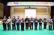 광장일보 주재영 기자 | 함양군은 11월 18일, 오전 11시 고운체육관에서 행정과 주민 간의 가교 역할을 하는 이장들이 한자리에 모여 ‘제18회 함양군이장단협의회 화합 한마당 행사’를 가졌다고 밝혔다. 이날 행사에는 진병영 함양군수, 김윤택 함양군의회 의장, 김재웅 경남도의원, 이춘덕 경남도의원, 기관 사회 단체장, 이장단 부부 등 500여 명이 참석해 이장단의 화합을 도모하고 그들의 노고를 격려하는 시간을 가졌다. 함양군이장단협의회(지회장 박윤섭) 주관으로 열린 이날 개회식은 개회 선언, 이장 헌장 낭독, 표창 수여, 개회사, 내빈 축사 등의 순으로 진행됐다. 이장 헌장 낭독 순서에는 안의면 독자마을 정연수 이장과 관북마을 박경순 이장이 이장 헌장을 낭독하며, 이장으로서의 사명감과 봉사 정신을 다짐하며 한마음으로 지역 발전에 앞장서겠다는 결의를 다졌다. 또한, 모범 이장들에게 도지사, 군수, 국회의원, 군의장, 함양경찰서장, 제118보병여단 3대대장, 농협 조합장, 전국이통장연합회 경남지부장·함양지회장 등의 표창이 수여됐다. 진병영 군수는 축사에서 “함양군의 리더, 262개 마을 이장님의 헌신과