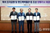 광장일보 주재영 기자 | 인천 송도국제도시 6·8공구 문화공원 부지에 예술적 가치와 산업적 전문성이 결합한 독창적인 문화 랜드마크가 들어선다. 인천광역시는 4월 28일 인천시청 대접견실에서 조각가, ㈜시몬느, 블루코어PFV㈜와 ‘핵석 조각공원과 핸드백 박물관·핵석 전시관 조성’을 위한 양해각서를 체결했다. 이번 체결식에는 유정복 인천광역시장과 조각가 김창곤 교수, 박은관 시몬느 회장, 이동만 블루코어PFV 대표 등이 참석했다. 이번 양해각서는 2년 전 송도국제도시 8공구 문화공원 내 핵석 조각공원과 핸드백 박물관을 조성하기로 합의한 이후 블루코어PFV가 개발사업시행자로 지정됨에 따라, 각 당사자들의 역할, 운영 방안, 협의체 구성 합의, 향후 절차 등을 구체적으로 명시한 것이다. 핵석 조각공원은 김창곤 조각가와 시몬느 박은관 회장이 보유한 수만 년의 세월을 견딘 화강암인 ‘핵석’으로 제작한 높이 4~18m의 대형 조각 작품 50여 점을 무상으로 기부해 조성된다. 핵석은 오랜 시간 자연 속에서 형성된 화강암으로 독특한 형태와 질감을 지닌 자연 유산이자 예술적 가치가 높은 소재다. 대형 조각 작품군으로