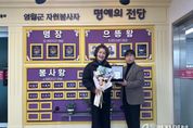 광장일보 이현나 기자 | 쌍용사랑 봉사회 김성순 씨가 봉사 실적 5,000시간을 달성해 2025년 강원특별자치도지사 명의의 자원봉사 ‘으뜸왕’ 칭호를 받았다. 이는 2020년 이후 5년 만에 탄생한 영월군 두 번째 으뜸왕으로, 김성순 씨의 영월군 자원봉사자 명예의 전당 등재는 12월 9일에 진행됐다. 영월군 자원봉사자 명예의 전당은 나눔과 헌신으로 지역사회에 공헌한 봉사자에게 예우를 제공해 자긍심을 높이고, 지속적인 자원봉사 활동을 확산하기 위해 마련된 제도다. 강원특별자치도지사 명의의 자원봉사 칭호는 1365 자원봉사포털 누적 실적(2007년 이후)을 기준으로 부여된다. 봉사 시간에 따라 ▲500시간 동장 ▲1,000시간 은장 ▲1,500시간 금장 ▲2,000시간 봉사왕 ▲5,000시간 으뜸왕 ▲10,000시간 명장으로 구분된다. 전정은 센터장은 “김성순 씨의 오랜 헌신에 깊이 감사드리며, 이러한 예우가 봉사자들의 자긍심을 높이고 앞으로도 지속적인 참여를 이끄는 계기가 되길 바란다”라고 말했다.