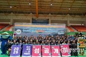광장일보 주재영 기자 | 2025년 여수시의용소방대 소방기술경연대회가 18일 여수시 진남실내체육관에서 열려 의용소방대의 재난대응 능력 향상과 상호 협력 강화를 위한 화합의 장이 마련됐다. 이번 경연대회는 여수소방서와 여수시의용소방대연합회가 주최·주관하고, 여수시와 여수소방서가 후원했으며 행사장에는 국회의원, 전라남도의원, 각 시·군 의용소방대 연합회장 등 주요 인사를 비롯해 약 300여 명의 의용소방대원이 참석해 자리를 빛냈다. 대회는 소방호스 전개 및 회수, 단체줄넘기 등 기술경연을 중심으로 진행됐으며, 개회식에서는 유공자 표창, 감사패 수여, 격려사와 축사가 이어졌다. 특히 ‘남해안 거점도시 미항 여수, 더 안전하고 더 행복한 여수’를 함께 만들기 위한 의미 있는 행사로 평가됐다. 서승호 여수소방서장은 격려사를 통해 “의용소방대는 예로부터 소방과 깊은 협력 관계를 이어온 조직으로 시민의 안전을 위해 함께 노력해온 든든한 동반자”라며 “앞으로도 여수시민의 생명과 재산을 지키기 위해 굳건한 협력을 이어가길 바라며, 오늘 이 자리에서 화합과 결속을 다질 수 있어 매우 뜻깊게 생각한다”고 밝혔다. 박근