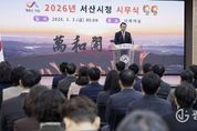 광장일보 이현나 기자 | 대전시는 1월 2일 시청에서 2026년 시무식을 열고, 새해 시정 운영 방향과 비전을 공유했다. 이날 시무식에는 이장우 대전시장을 비롯한 간부 공무원과 직원들이 참석해, 희망찬 새해의 출발을 함께했다. 이장우 시장은 신년사를 통해 “2026년 병오년(丙午年)은 붉은 말의 해로, 거침없는 변화와 도약을 상징한다”라며, “미래를 선도하는 일류 경제도시 대전, 대한민국 新 중심 도시 충청 완성을 향해 시민과 함께 흔들림 없이 전진하겠다”라고 강조했다. 이장우 시장은 새해 주요 시정 방향으로 ▲국가 균형발전을 선도하는 대전충남 행정통합 추진 ▲바이오․반도체․우주․국방․양자․로봇 등 첨단 전략산업 육성 ▲돌봄․의료․청년․소상공인을 아우르는 민생 중심 정책 ▲문화․관광․체육 인프라 확충 ▲친환경․원도심 재생을 통한 지속가능한 도시 조성 등을 제시했다. 끝으로 이 시장은 “어려운 여건 속에서도 뒤로 물러서지 않고 앞으로 나아가는 불퇴전진의 정신으로 시민 행복을 최우선에 두겠다”라며, “시민이 체감하는 변화와 성과를 만들어 가는 한 해가 되도록 모든 역량을 집중하겠다”라고 밝혔다. &nb