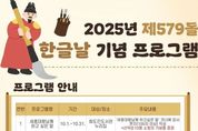 광장일보 주재영 기자 | 인천광역시교육청 화도진도서관은 제579돌 한글날을 맞아 한글의 가치와 의미를 알리고 한글 역사와 문화를 체험 기회를 제공하는 기념 행사를 10월 1일부터 31일까지 운영한다. 주요 프로그램은 세종대왕에게 감사 편지를 쓰는 온라인 참여형 ‘세종대왕님께 하고 싶은 말’, ‘훈민정음 해례본 필사’, 추천도서 서평을 남기는 ‘화도진 책갈피’ 등이며, 서평을 남긴 참여자에게는 소정의 기념품을 제공한다. 어린이자료실에서는 ‘행복한 한글 저금통’과 ‘어린이 독서퀴즈’가 진행되며, 일반자료실과 어린이자료실에서는 『제579돌 한글날』과 『한글날 이야기』를 주제로 한 도서 전시도 진행될 예정이다. 자세한 내용은 화도진도서관 누리집을 참조하거나 독서문화과로 문의하면 된다.