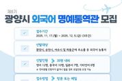 광장일보 주재영 기자 | 광양시가 국제교류 현장에서 활동할 ‘제8기 외국어 명예통역관’을 모집한다. 광양시 외국어 명예통역관은 시의 국제화 정책 추진과 각종 국제교류 활동을 지원하는 역할을 맡는다. 주요 활동 분야는 국제행사, 해외 방문단 의전, 청소년 국제교류 등에서의 통역 및 안내 업무 수행으로, 시의 요청에 따라 통역에 참여할 경우 '광양시 통역관 위촉 및 운영 규정'에 따른 소정의 통역수당이 지급된다. 제8기 모집 인원은 총 35명(영어 12명, 중국어 10명, 일본어 7명, 기타 언어 6명) 내외이며, 지원 자격은 광양시를 비롯해 순천·여수·하동 등 인근 지역 거주자 중 외국어 능통자 또는 한국어가 능숙한 외국인이다. 선발된 명예통역관은 2026년 1월부터 2027년 12월까지 2년간 활동한다. 신청 접수 기간은 11월 17일부터 12월 5일까지 3주간이다. 희망자는 시 누리집 공고·공지사항에서 신청서를 내려받아 작성한 뒤 이메일로 제출하거나, 광양시 철강항만과 국제협력팀을 방문해 제출하면 된다. 정승재 철강항만과장은 “글로벌 교류가 확대되는 흐름 속에서 전문 통역 인력의 중요성이 더욱 커