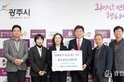 광장일보 주재영 기자 | 광주시 사회적경제협회 소속 사회적경제 기업들이 ‘2025년 광주시 사회적경제 나눔장터’를 통해 마련한 판매 수익금 303만 5천 원을 20일 광주시에 이웃돕기 성금으로 기탁했다. 사회적경제 기업들은 곤지암도자공원과 경안동 행정복지센터 앞 광장에서 열린 나눔장터에 참여해 다양한 사회적경제 제품을 판매하며 지역사회와의 상생 가치를 실천했다. 기업들은 장터 운영 취지에 따라 수익금을 지역사회에 환원하기로 뜻을 모아 이번 성금을 마련했다. 광주시 사회적경제협회는 “나눔장터는 사회적경제의 가치와 취지를 시민과 나누는 자리였다”며 “참여 기업 모두가 사회적 책임의 실천을 위해 수익금을 기탁하게 된 것을 뜻깊게 생각하며 앞으로도 지역과 함께 성장할 수 있도록 지속적인 나눔 활동을 이어가겠다”고 밝혔다. 이에 대해 방세환 시장은 “지역사회를 위해 기꺼이 나눔을 실천해 준 사회적경제 기업들께 깊이 감사드린다”며 “기탁해 주신 성금은 도움이 필요한 이웃들에게 따뜻한 마음과 함께 전달하겠다”고 말했다.