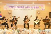 광장일보 이현나 기자 | 횡성군은 12일 여성회관 대강당에서 강사와 수강생 등 250여 명이 참석한 가운데 2025년 여성회관 교육 수료식 및 발표회를 성황리에 개최했다. 올해 여성회관 교육프로그램은 4개 분야 31개 과목을 상하반기 각 4개월씩 운영하여 568명이 수료했으며, 수료식은 그간 수료생들의 성실한 참여와 노력을 격려하는 자리로 마련됐다. 2부 발표회에서는 기타교실을 포함한 총 6개 강좌가 다채로운 공연을 선보였으며 관람객들은 수강생들의 열정과 성과를 함께 나누며 큰 호응을 보냈다. 또한, 캘리그라피, 서양화, 섬유채색, 핸드페인팅, 어반스케치 등 5개 강좌의 작품 전시회가 함께 열려 수강생들이 그동안 갈고닦은 솜씨를 선보이는 기회가 됐다. 특히 자격증 취득 과정에서는 올 상반기에만 GTQ포토샵 1급 등 4개 과목에서 총 26개의 자격증을 취득했으며, 연말 자격시험 결과까지 더할 경우 수료생들의 자격 취득 실적은 더욱 늘어날 전망이다. 김홍석 군 가족복지과장은 “여성회관 교육 프로그램을 통해 군민들이 새로운 지식과 기술을 배우며 자기계발과 역량을 높이고, 건전한 여가와 문화를 향유할 수