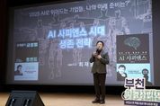 광장일보 주재영 기자 | 부천시는 지난 19일 부천시청 어울마당에서 부천시 전 직원을 대상으로 조용익 시장의 인사말과 함께 ‘부천 아카데미 플러스(+)’ 세 번째 강연을 열었다. ‘부천 아카데미 플러스(+)’는 부천시가 2025년부터 분기별로 운영 중인 명사 초청 강연 프로그램으로, 공직자가 시정 전반에 대한 통찰과 전문성을 넓히고 미래 변화에 능동적으로 대응할 수 있도록 각 분야 최고 연사를 초청해 진행하고 있다. 이번 강연에는 성균관대학교 공과대학 최재붕 교수를 초청해 ‘AI 사피엔스 시대 생존 전략’을 주제로 진행했으며, 부제는 ‘2025. AI로 뛰어드는 기업들, 나의 미래 준비는?’이다. 최 교수는 ‘AI 사피엔스’, ‘AI 대전환’이라는 키워드를 통해 급변하는 사회 속 인공지능(AI) 시대를 살아가는 시민과 공직자의 생존 전략을 제시했다. 이와 함께 디지털 세계관을 바탕으로 한 상상력과 실력의 결합, AI와 인문학, 경험 디자인이 융합된 팬덤 중심 사회의 변화를 강조하며, 공직자도 자발적인 AI 학습과 전문 역량 강화를 통해 새로운 시대의 리더로 성장해야 한다고 강조했다. 최