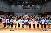광장일보 주재영 기자 | 대구 동구청은 지난 17일, 대구텍스타일콤플렉스(DTC) 다목적홀에서 학부모, 학생, 교육관계자 등 200여 명이 참여한 가운데 ‘동구 교육 성과공유회’를 성황리에 개최했다. 이날 행사는 지난 3년 동안 추진된 교육사업 성과를 돌아보고, 지역 교육발전에 기여한 교육관계자들의 노고를 격려하는 등 지역 교육의 공동 발전을 도모하기 위해 마련됐다. 율금초 ‘율금빛소리합창단’의 식전공연과 동구 교육성과를 담은 홍보영상 상영으로 성과공유회는 시작됐으며, 이어 교육발전에 기여한 교사 5명에게 유공자 표창을 수여했다. 2부에서는 ‘교육혁신으로 여기 동구의 미래지도’를 주제로 김동기 동구진로진학지원센터장의 특강과 동구교육재단과 초·중·고등학교의 우수사례 발표를 통해 동구 교육지원 사업의 다양한 성과를 공유했다. 또한 ‘동구교육에 바란다’ 메시지 작성 부대행사에서는 지역 교육에 대한 폭넓은 의견과 희망을 나눴다. 윤석준 동구청장은 “지난 3년 동안 동구는 학생 중심 맞춤형 교육지원을 통해 많은 성과를 거두었다”며 “오늘 성과공유회가 동구 교육의 긍정적 변화를 공유하는 소중한 시간이 됐길 바