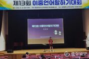 광장일보 주재영 기자 | 광주광역시교육청송정다가치문화도서관은 지난 27일 광주광역시교육청교육연구정보원 대강당에서 관내 다문화 학생을 대상으로 ‘제13회 이중언어말하기대회’를 개최했다. 이번 대회는 다문화 학생들의 이중언어 역량을 강화하고 자긍심을 높여 글로벌 인재로 성장할 수 있도록 지원하기 위해 마련됐다. 올해 대회에는 초등부 14명, 중등부 9명 등 23명의 다문화가정 학생이 참가해 ▲나에 대한 이야기 ▲내가 사랑하는 한국문화 ▲한국어 또는 이중언어를 배운 경험 ▲내가 좋아하는 사람 등을 주제로 이중언어 실력을 선보였다. 특히 월곡초 김가탸(6학년·러시아어) 학생과 동일미래과학고 현정(3학년·중국어) 학생 등 2명이 각각 초등부와 중등부 금상을 수상했다. 또 광주여자상업고 신비올레타(1학년·러시아어) 학생이 은상을 수상자했다. 신비올레타 학생은 은상 수상자 중 최고득점자에게 주는 ‘소수언어 우수자(일본어, 중국어를 제외한 언어)’로 선발돼 김가탸, 현정 학생과 함께 전국대회 출전 자격을 얻게 됐다. 이에 따라 이들 학생 3명은 오는 11월 8일 교육부 주관으로 열리는 ‘