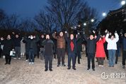 광장일보 주재영 기자 | 공주시는 1월 1일 금강신관공원에서 시민과 함께하는 ‘2026년 병오년 해맞이 행사’를 개최했다. 이날 해맞이 행사는 시민의 건강과 행복을 기원하고 희망찬 새해의 출발을 함께 다짐하기 위해 마련됐으며, 최원철 시장과 각 기관·단체장, 시민 등 1천여 명이 참여한 가운데 진행됐다. 행사 참가자들은 떠오르는 새해 첫 해를 바라보며 한 해의 안녕과 화합을 기원했다. 행사는 식전 공연을 시작으로 시민과 함께하는 해맞이 대북치기, 해맞이 함성과 새해맞이 퍼포먼스, 공주시립합창단과 사물놀이 공연 순으로 이어지며 새해 분위기를 한층 고조시켰다. 행사장에는 군밤굽기 체험과 가훈쓰기, 포토존 등 부대행사도 함께 운영돼 시민들의 호응을 얻었다. 해맞이 행사 종료 후에는 공주보훈공원에서 보훈공원 참배 행사가 이어졌다. 참배에는 시장과 시의장, 국회의원, 보훈단체장, 도·시의원, 기관·단체장 등이 참석해 호국영령과 국가유공자의 숭고한 희생과 헌신을 기렸다. 참배 행사는 헌화와 분향, 위패실 참배 순으로 진행됐으며, 참석자들은 새해 첫날 보훈의 의미를 되새기고 나라를 위해 헌신한 분들