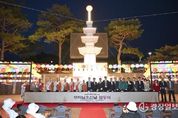 광장일보 주재영 기자 | 문경시불교연합회는 불기 2570년 부처님 오신 날(5월 24일)을 앞두고 4월 23일 오후 7시 30분에 모전공원 광장에서 봉축탑 점등식을 봉행했다. 이번 점등식은 문경시불교연합회가 주최하고, 문경시불교신도연합회가 주관했으며, 스님, 불자, 시민 등 200여 명이 참석한 가운데 봉축탑에 불을 밝히고 삼귀의례, 반야심경 봉독, 봉축 탑돌이, 사홍서원 순으로 진행됐다. 이날 점등된 봉축탑은 부처님 오신 날의 의미를 담아 밝힌 등불로 시민들에게 희망과 치유의 메시지를 전하고 따뜻한 공동체 분위기 조성에 기여할 것으로 기대된다. 문경시불교연합회 회장인 상오스님은 봉축사를 통해“오늘 밝힌 봉축의 등불이 모든 중생의 마음을 비추어 탐욕과 갈등을 내려놓고 자비와 화합의 길로 나아가기를 발원합니다”고 전했다. 이동욱 문경시 부시장은 “부처님의 자비와 지혜의 가르침이 우리 사회 곳곳에 스며들어 시민 모두가 함께하는 화합의 문경이 되기를 바랍니다 ”고 말했다.