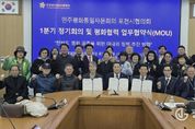 광장일보 주재영 기자 | 민주평화통일자문회의 포천시협의회는 지난 2월 27일 포천시청 시정회의실에서 ‘2026년 1분기 정기회의 및 평화통일 협력 업무협약 체결식’을 개최했다. 이번 행사는 조용춘 협의회장을 비롯한 자문위원들과 업무협약 체결 기관 관계자, (사)공정평화통일국민연대 포천시지회 및 기후위기 포천시민행동 관계자 등이 참석했다. 1부 정기회의에서는 지역 내 통일 기반 조성을 위한 정책 건의와 의견 수렴이 이루어졌으며, 2026년 상반기 주요 사업에 대해 논의했다. 2부 행사에서는 지역 시민단체와 업무협약을 체결했다. 이번 협약을 통해 각 기관은 평화통일을 위한 협력 체계를 공고히 구축하기로 뜻을 모았다. 또한, 이날 행사에서는 평화통일 기반 구축에 기여한 공로로 임지은 자문위원이 경기도지사 표창을 전수받는 영예를 안았다. 조용춘 협의회장은 개회사를 통해 “이번 정기회의는 급변하는 정세 속에서 한반도 평화 공존을 위한 실천적 방안을 모색하는 뜻깊은 자리”라며, “지역 시민단체와 긴밀한 협력을 통해 포천시가 평화통일의 마중물 역할을 수행할 수 있도록 자문위원들의 지혜를 모아달라”고 당부했다.