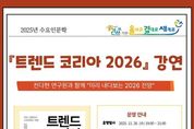 광장일보 주재영 기자 | 인천광역시교육청서구도서관은 11월 26일 오후 7시부터 9시까지 『트렌드 코리아 2026』의 공동 저자 전다현 연구원을 초청해 ‘미리 내다보는 2026 전망’ 강연을 진행한다. 이번 강연은 서구도서관의 대표 인문학 프로그램인 '수요인문학'의 일환으로, 함께읽기 프로그램과 연계해 온라인(ZOOM)으로 운영된다. 서울대 소비트렌드분석센터 전다현 연구원이 ‘HORSE POWER’를 핵심 키워드로 인공지능(AI) 대전환 시대의 변화와 대응 전략을 이야기할 예정이다. 참가 신청은 11월 12일 오전 10시부터 서구도서관 누리집에서 가능하며, 자세한 사항은 독서문화과로 문의하면 된다.