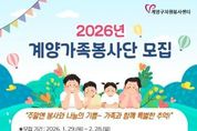 광장일보 주재영 기자 | 인천광역시 계양구 자원봉사센터는 가족 단위 자원봉사 문화 확산을 위해 2026 마음 잇는 ‘계양 가족봉사단’에 참여할 20가족을 오는 3월 2일까지 선착순 모집한다고 밝혔다. ‘계양 가족봉사단’은 초등학생 이상 자녀를 둔 가족이 함께 참여하는 프로그램으로, 선정된 가족들은 3월부터 11월까지 총 8회에 걸쳐 매월 마지막 주 토요일마다 정기적인 나눔 활동에 참여하게 된다. 가족봉사단은 3월 발대식을 시작으로 ▲우리 고장 문화재 지킴이 ▲수제청 만들기&나눔 ▲가족 재난 안전체험 ▲송편 빚고 독거어르신 가정에 전달하는 추석온정 나누기 ▲농촌일손돕기 ▲요양시설 방문 등 월별 테마에 맞춘 다양한 봉사활동을 펼칠 예정이다. 신청은 계양구청 및 계양구자원봉사센터 누리집에서 신청서를 내려받아 작성한 후 이메일 또는 팩스로 제출하거나, 네이버폼을 통해 접수하면 된다. 홍순석 센터장은 “가족이 함께하는 작은 실천이 지역사회를 변화시키는 가장 큰 힘이 될 것이며, 계양 가족자원봉사단을 통해 자원봉사의 즐거움과 보람을 함께 경험하길 바란다.”라고 말했다.