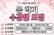 광장일보 주재영 기자 | 인천 계양국제어학관이 2026년 봄 학기 프로그램 수강생을 모집한다고 밝혔다. 수강 기간은 3월 3일부터 5월 22일까지이며, 전화 상담 후 레벨테스트를 거쳐 수강 등록이 진행된다. 등록 일정은 레벨테스트 이후 개별 안내될 예정이다. 정규 프로그램 레벨테스트는 오는 2월 10일 오후 3시에 계양국제어학관 누리집을 통해 온라인으로 진행되며, 선착순으로 접수 마감된다. 모집은 계양구민을 우선으로 한다. 정규 프로그램은 초·중등을 대상으로 운영되며, 월·수·금반은 4회, 화·목반은 23회 과정으로 진행된다. 교육과정은 단계별 영어 수업(Basic 1~MA)으로 운영되며, 최상위 과정인 알파고(Alphago)반이 포함된다. 원어민 및 내국인 강사의 교차 수업 방식으로 진행되며, 무상 통학버스를 운영한다. 토요 프로그램은 초·중등을 대상으로 운영되며, 1시간 수업은 11회 과정, 2시간 수업은 11회 과정이다. 프로그램은 스토리텔링, 리딩어드벤처스, 일본어, 컬러풀 잉글리시, 영어과학 과정으로 구성된다. 성인