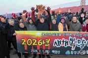 광장일보 주재영 기자 | 함양군은 2025년을 마무리하고 희망찬 2026년 새해를 맞아 제야의 종 타종식과 해맞이 행사를 개최하며 군민 화합과 새출발의 의미를 다졌다. 군에 따르면 2026년 새해 첫날인 1월 1일 오전 7시, 백암산 정상(해발 621m)에서 군민 등 500여 명이 참여한 가운데 새해 해맞이 행사가 열렸다. 함양라이온스클럽(회장 신기배) 주관으로 열린 해맞이 행사는 안녕 기원제를 시작으로 진행됐다. 초헌관에는 진병영 함양군수가, 아헌관에는 신성범 국회의원, 종헌관에는 함양라이온스클럽 신기배 회장이 참여해 군민 모두의 평안과 안녕을 기원했다. 이어 새해 희망 메시지 전달, 소망 시루떡 절단식, 일출 감상 및 새해 소원 빌기, 군민 안녕과 지역 발전을 기원하는 만세삼창이 이어지며 새해의 의미를 더했다. 행사 후에는 백암산 아래 두산마을회관에서 떡국 나눔 행사가 열려 참가자들이 덕담을 나누며 새해를 함께 축하했다. 진병영 군수는 희망의 메시지를 통해 “백암산의 정기와 새해의 기운을 받아 2026년 한 해도 군민 모두가 건강하고 행복하기를 바란다”라며 “군민과 함께 더 나은 함