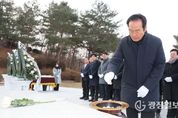 광장일보 주재영 기자 | 의성군은 1월 1일, 2026년 병오년(丙午年) 새해를 맞아 해맞이 행사와 충혼탑 참배를 차례로 진행하며 군민의 안녕과 지역 발전을 기원했다고 밝혔다. 이날 새벽 의성읍 구봉산 봉의정 일원에서는 새해 첫 해를 맞이하는 해맞이 행사가 의성 청년회의소(회장 홍성우) 주관으로 열렸다. 행사에는 김주수 의성군수를 비롯해 군의회 의장, 관내 기관·단체장과 군민 등 800여 명이 참석해 새해 희망을 함께 나눴다. 해맞이 행사에서는 신년 축하 메시지와 함께 액운을 떨치고 건강과 행복을 기원하는 황금박 터뜨리기 이벤트가 진행돼 참여한 군민들로부터 큰 호응을 얻었다. 또한 의성군은 행사 안전을 위해 경찰서와 소방서 등 유관기관과 협력해 혼잡 구간에 안전요원과 교통 통제 인력을 배치했으며, 지역 청년단체와 민간단체들도 행사 운영을 도우며 안전한 해맞이를 지원했다. 해맞이 행사 이후에는 항일독립운동기념탑과 충혼탑에서 참배가 이어졌다. 참배에는 김주수 의성군수를 비롯해 도·군의원, 기관·보훈단체장, 군민 등 100여 명이 참석했으며, 헌화와 분향, 묵념 순으로 엄숙하게 진행됐다. 참석자들은 순