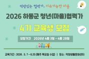 광장일보 주재영 기자 | 하동군은 지역 활력 회복과 청년 일자리 창출을 위해 추진 중인 ‘청년(마을)협력가 양성과정’의 제4기 교육생을 오는 4월 28일까지 모집한다고 밝혔다. 청년(마을)협력가는 마을 현장에 파견되어 주민과의 교류를 바탕으로 마을의 활력을 높이는 현장 전문가로써 활동한다. 주요 역할은 △지역 프로그램 기획 및 운영 △마을 활성화 방안 제안 △지역자원 기반 상품 제작 및 마케팅 지원 △주민 이야기 및 명소 발굴을 통한 스토리텔링 등이다. 하동군은 지난 2023년부터 해당 사업을 꾸준히 추진해왔으며, 현재까지 총 16명의 협력가를 양성했다. 2026년 현재 11명의 협력가가 마을 곳곳에서 주민들과 연대하며 지역의 변화를 이끌어내고 있다. 이번 제4기 과정은 15명 내외의 교육생을 모집하며, 교육은 5월 7일부터 6월 25일까지 매주 목요일 악양생활문화센터에서 진행된다. 교육 수료생 중 성적이 우수한 5~7명은 실제 마을로 파견되어 협력가로서 본격적인 활동을 시작하게 된다. 수강 희망자는 오는 4월 28일까지 놀루와를 통해 유선으로 접수할 수