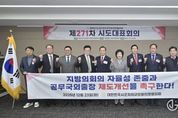 광장일보 이현나 기자 | 대한민국시군자치구의회 의장협의회 제271차 시도대표회의가 23일 서울특별시 서울올림픽파크텔에서 열렸다. 이날 시도대표회의에서는 '공무원 여비 규정 현실화 및 국외공무출장 위탁수수료 제도 개선 촉구'건의안 및 의장협의회의 2026년 당초예산안 및 2026년도 시·도전출금 사업계획(안) 승인의 건 등을 심의했다. 특히 최익순 사무총장(강릉시의장)은 행정안전부의 일방적인 지방의회 공무국외출장 제한 조치에 깊은 유감을 표하며, 지방의회의 자율성 존중과 공무국외출장 제도개선을 촉구하는 성명서를 낭독했다. 최근 행정안전부는 ‘지방의원 임기만료 전 외유성 공무국외출장 방지 대책’을 발표하고 ‘지방의회의원 공무국외출장 규칙 표준’개정안을 마련한다고 밝혔으나, 의장협의회는 당사자인 시군 자치구의회의 의견수렴 절차 없이 일방적으로 발표됐으며, 법률적 타당성의 문제와 지방의회의 자율적 조직권을 침해하는 문제가 있다고 판단했다. 이에 최익순 사무총장은 ▲법률적 근거가 불명확한 지방 교부세 패널티 방안과 위원회 구성 강제 조항의 철회, ▲국외여비 기준 개선과 지방의회 국제교류 및 정책연구활동 지원