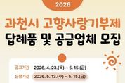 광장일보 주재영 기자 | 과천시는 고향사랑기부제 활성화를 위해 답례품 공급업체를 공개 모집한다고 밝혔다. 시는 최근 열린 답례품선정위원회를 통해 답례품 분야를 확대하고 품목 제한을 없애기로 했다. 이에 따라 관내 사업장을 둔 업체를 대상으로 공개 모집을 진행한다. 신청 대상은 답례품으로 제공할 수 있는 물품을 생산·제조하고 배송이 가능한 업체다. 참여를 희망하는 업체는 과천시 누리집 ‘과천소식'고시‧공고’에서 신청 서식을 작성한 뒤, 5월 13일부터 15일까지 전자우편 또는 과천시청 방문을 통해 서류를 제출하면 된다. 시는 접수된 업체를 대상으로 답례품선정위원회 심의를 거쳐 공급업체와 답례품을 최종 선정할 계획이다. 선정된 답례품은 오는 6월부터 ‘고향사랑e음’을 통해 기부자들에게 제공될 예정이다. 이번 모집은 기부자에게는 선택의 폭을 한층 넓히고, 참여 업체에는 전국 단위 홍보와 판로 확대의 기회를 제공하는 계기가 될 것으로 기대된다. 시 관계자는 “과천시만의 특색을 살린 경쟁력 있는 답례품을 적극 발굴하여 고향사랑기부제의 취지를 살리고, 지역경제 활성화로 이어질 수 있게 하겠다”라고