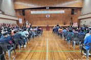 광장일보 주재영 기자 | 함양군은 제65회 경상남도민체육대회 출전을 앞두고 4월 17일 오후 2시 함양군 고운체육관에서 선수단 결단식을 개최했다. 이날 행사에는 진병영 함양군수를 비롯해 김윤택 군의회 의장, 김재웅·이춘덕·한상현 도의원, 군의원, 윤외준 농협은행 함양군지부장, 이영일 대한노인회 함양군지회장, 이창구 천령문화제 위원장, 이연주 함양고등학교 교장, 이영재 함양신협 이사장, 김철규 함양군새마을금고 이사장, 관내 기관·사회 단체장, 안병명 함양군체육회장, 선수와 임원 등 200여 명이 참석해 함양군 선수단의 선전을 기원했다. 결단식은 경과보고, 출정사, 격려사, 선수단 대표 선서, 발전기금 전달, 단기 수여 순으로 진행됐다. 함양군은 이번 대회에 육상, 테니스, 야구, 농구, 탁구, 유도 등 20개 종목에 선수단 408명과 임원단 165명 등 총 573명의 선수단을 구성해 출전한다. 군 단위에서 처음으로 개최되는 제65회 경남도민체육대회는 4월 17일부터 20일까지 4일간 함안군과 창녕군 일원에서 열리며, 도내 18개 시군에서 총 2만여 명이 참가해 정식 32개, 시범 4개 등 총 36개 종목에서 열
