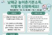 광장일보 주재영 기자 | 남해군은 ‘농어촌 기본소득 시범사업’ 신청 접수를 오는 12월 30일부터 2026년 1월 30일까지 실시한다고 밝혔다. 농어촌 기본소득 시범사업은 남해군에 주민등록을 두고 실제 거주하는 군민을 대상으로 하며, 대상자로 확정될 경우 월 15만 원을 지역사랑상품권(카드형·선불카드)으로 지급하는 사업이다. 신청 대상은 신청일 기준 30일 이상 남해군에 주소를 두고 실제 거주 중인 주민으로, 군 복무자, 타 지역 대학생, 시설 입소자 등 실제 거주가 불분명한 경우는 제외된다. 신청은 주소지 관할 읍·면 행정복지센터 총무팀을 방문해 본인이 직접 신청해야 하며, 신분증을 반드시 지참해야 한다. 미성년자나 피후견인의 경우에는 법정대리인을 통한 대리 신청이 가능하며, 이 경우 대리인 신분증과 가족관계증명서 등 관계를 확인할 수 있는 서류를 제출해야 한다. 거주 시기에 따라 신청 요건도 달라진다. 2025년 10월 19일 이전부터 거주한 기존 주민은 최초 접수 기간 내 신청이 가능하며, 2025년 10월 20일 이후 전입한 신규 거주자는 전입일로부터 30일이 경과한 이후 신청할 수 있다. 신규 전입자는