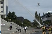 광장일보 주재영 기자 | 김해시도시개발공사 진영스포츠센터는 다가오는 2026년 전국(어울림)생활체육대축전의 성공적인 개최를 대비하여 지난 7일 진영공공체육시설 일원에서 진영119안전센터와 소방합동훈련을 실시했다. 이번 훈련은 체육행사 특성을 고려하여 화재 등 각종 재난 상황 발생 시 신속한 대응체계를 구축하고 유관기관 간 협력 대응능력을 강화하기 위해 마련됐다. 이날 훈련에는 스포츠센터 1층 남자탈의실에 화재가 발생했다고 가정해 센터 자위소방대의 상황 전파 및 화재 초기 진압과 진영119안전센터의 화재진압과 인명구조 및 응급처치 등을 전개했다. 특히 체육행사 관련 시설임을 감안해 맞춤형 대피 유도훈련과 더불어 화재초기 확산을 조기 진압하는 실전형 훈련으로 진행됐다. 센터 관계자는“다가오는 4월, 6월에 개최되는 2026년 전국(어울림)생활체육대축전에서 진영공공체육시설은 축구, 보디빌딩, 휠체어 럭비 경기장으로 지정됐다”며“많은 선수와 시민들이 방문할 것으로 예상되는 만큼 철저한 사전 점검과 훈련을 통해 안전사고 예방에 최선을 다하겠다”고 밝혔다. 진영스포츠센터는 향후에도 지속적인 안전
