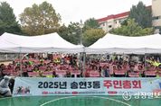 광장일보 주재영 기자 | 인천 동구 송현3동 주민자치회(회장 신흥균)는 지난 19일 돌산공원에서 2025년 주민총회를 개최하고, ‘2026년도 자치계획’을 확정했다고 밝혔다. 이번 주민총회는 주민들의 참여율을 높이기 위해 지난 1일부터 온라인 투표와 찾아가는 현장 투표를 병행하여 진행됐으며, 450여 명의 주민이 사전투표에 참여하는 등 높은 관심을 보였다. 총회는 ▲2024년 감사보고 ▲2025년 사업 경과보고 ▲2026년도 자치계획안 및 사업의제 소개 순서로 진행됐으며, 주민 찬성으로 ‘2026년도 자치계획안’이 최종 통과됐다. 추진사업으로는 ‘우리 마을 문화가 있는 날’이 1위를 차지했고, ‘이웃사랑 행복 더하기’와 ‘행복한 향기 만들기’가 그 뒤를 이었다. 행사 현장에서는 예쁜 손글씨 프로그램 수강생 작품 전시와 중국의상 체험 및 사진 촬영 이벤트가 마련되어 주민들의 큰 호응을 얻었다. 신흥균 주민자치회장은 “주민들의 적극적인 참여 덕분에 주민총회를 성공적으로 마무리할 수 있었다”며 “앞으로도 주민과의 소통을 통해 지역 현안을 발굴하고 해결해 나가겠다”고 말했다. 장미