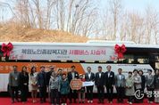 광장일보 이현나 기자 | 강원특별자치도는 4월 2일 오전 10시, 북원노인종합복지관에서 복지관 셔틀버스 시승식을 개최했다. 이날 행사에는 원제용 강원특별자치도의회 사회문화위원장, 김기홍 도의원, 원주시 부시장, 밥상공동체복지재단 허기복 대표를 비롯해 지역 어르신 등 약 60여 명이 참석했다. 행사는 시승 기념 판넬 전달에 이어 도지사와 관계자, 어르신 30여 명이 직접 차량에 탑승해 체험하는 방식으로 진행됐다. 이번에 도입된 셔틀버스(45인승)는 어르신들의 이동 편의증진과 복지관 이용 활성화를 위해 총 2억 원(도비 1억, 시비 1억)을 투입해 지난 3월 구입했다. 도는 올해 어르신 병원동행, 응급안전안심 서비스, 노인맞춤돌봄 서비스, 노인 일자리, 경로당 운영 등에 총 1조 3천억 원을 투입해 어르신들의 안정적인 노후생활을 지원하고 있다. 또한 노인 일자리를 역대 최대 규모인 7만 9,459개로 확대하고 지난 3월 27일부터는 어르신이 살던 곳에서 계속 생활할 수 있도록 의료와 돌봄을 연계한 통합서비스(141억 원)을 제공하고 있다. 김진태 강원특별자치도지사는 “앞으로