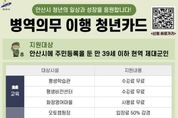 광장일보 주재영 기자 | 안산시는 병역의무를 성실히 이행한 청년들을 위해 운영 중인 ‘병역의무 이행 청년카드’의 혜택을 오는 5월부터 대폭 확대한다고 30일 밝혔다. 이번 혜택 확대는 제대군인 청년들이 지역사회에서 안정적으로 정착하고, 병역 이행에 대한 실질적인 자긍심을 느낄 수 있도록 마련됐다. 5월부터 추가되는 신규 혜택은 ▲관내 공영주차장 주차요금 50% 감면 ▲청년몰(다농마트·신안코아) 10% 할인 ▲기차카페 세라티 포장 음료 10% 할인 ▲안산 썰매장 군인요금 적용 ▲청년정책 정보 ‘청필모(청년에게 필요한 모든 정보)’ 모바일 소식 정기 발송 등 5종이다. 기존에 제공하던 평생학습강좌 수강료 전액 면제와 화랑오토캠핑장 등 문화·관광시설, 올림픽기념관 등 체육시설 이용료 감면 혜택도 그대로 유지된다. 지원 대상은 안산시에 주민등록을 둔 39세 이하 제대군인이다. 신청은 안산시 통합예약시스템에서 할 수 있으며, 경기도 행정서비스 앱 ‘경기똑D’를 통해 모바일 카드로도 발급받을 수 있다. 시는 지난해 9월 전국 최초로 ‘안산시 병역의무 이행 청년 예우 및 지원에 관한 조례’를 제정하