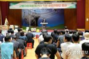광장일보 주재영 기자 | 고흥군은 지난 26일 고흥군민회관에서 고흥자원재활용센터 직원 100여 명이 참여한 가운데 화합한마당 행사를 개최했다고 밝혔다. 이번 행사는 고흥자원재활용센터 직원들이 주관해 체육경기와 노래자랑 등 다채로운 프로그램을 통해 동료 간 우의와 화합을 다지는 뜻깊은 시간이 됐다. 행사에 참여한 공영민 군수는 “올여름 무더위 속에서도 생활폐기물 수거에 헌신해 주신 직원 여러분께 감사드린다”며 “추석 연휴 기간에도 쓰레기 수거를 위해 4일간을 평상시와 같이 근무한다니 군민과 함께 감사한 마음이다”고 말했다. 이어 “앞으로도 여러분의 복지증진을 위해 아낌없이 지원해 나가겠다”며 “추석 명절 가족과 함께 풍성하고 따뜻한 시간을 보내시길 바란다”고 말했다. 고흥자원재활용센터는 16개 읍·면에서 하루 92톤의 생활폐기물을 수거해 소각·매립·재활용 등으로 선별 처리하며, 깨끗한 고흥을 만들기 위해 환경지킴이로서 최선을 다하고 있다.