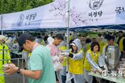 광장일보 주재영 기자 | 경주시 대표 K푸드 선도 기업 ㈜미정(회장 정기율)은 지난 4일 열린 ‘제33회 경주벚꽃마라톤대회’에서 국내외 참가자 1만 5,000여 명이 참가한 가운데 행사를 지원했다. 완주자들을 중심으로 ‘경주미정당 할배쌀국시’ 1만 3,600컵을 제공해 큰 호응을 얻었다. 이날 행사장에는 비가 내리는 궂은 날씨 속에서도 완주를 마친 참가자들이 줄지어 배식 부스를 찾았다. 현장에서는 자원봉사자들이 우비를 입은 채 쌀국수를 나르며 분주하게 움직였다. 따뜻한 국물을 건네받은 참가자들은 “비를 맞으며 뛴 뒤 먹는 한 그릇이라 더 맛있다”, “경주에서 받은 가장 기억에 남는 환대”라고 입을 모았다. 특히 완주 직후 체온이 떨어진 참가자들에게 제공된 쌀국수는 단순한 간식을 넘어 회복식 역할을 하며 현장 분위기를 한층 훈훈하게 만들었다. 일부 참가자들은 부스 인근에서 즉석 식사를 하며 서로의 완주를 축하하는 모습도 이어졌다. ㈜미정은 경주시 현곡면에 소재한 쌀 가공식품 전문 제조업체로, 미정당 쌀국수와 떡국 등을 지역사회에 꾸준히 기부하며 사회공헌 활동을