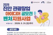 광장일보 주재영 기자 | (사)진안군관광협의회(이사장 이재동)가 지역 관광자원을 활용한 창의적인 아이디어를 발굴하고 실질적인 사업화를 지원하기 위해 ‘2026 진안 관광창업 아이디어 공모전’을 개최한다. 이번 공모전은 관광수요 창출과 수익화가 가능한 전 분야(관광상품·서비스, 체험 콘텐츠, 관광 시설 및 기술 등)를 대상으로 하며, 오는 5월 31일까지 접수를 진행한다. 공모는 ‘아이디어 부문’과 ‘창업 부문’ 2개 분야로 나뉘어 진행된다. ▲‘아이디어 부문’은 진안군 관광 활성화에 참신한 제안을 하고 싶은 누구나 참여할 수 있으며, ▲‘창업 부문’은 예비 창업자(선정 후 14일 이내 진안군 소재 등록 필수) 또는 진안군 소재 사업자 등록 만 3년 이내의 초기 창업자가 대상이다. 두 부문 간 중복 참여도 가능하다. 특히, 이번 공모전은 단순한 아이디어 발굴에 그치지 않고 선정된 팀에게 상금과 함께 5개월간의 밀착 벤처 지원 혜택을 제공하는 것이 특징이다. 맞춤형 컨설팅과 마케팅 지원을 통해 제안된 아이디어가 성공적인 지역 기반 비즈니스로 안착할 수 있도록 도울 것으로 전망된다. (사)진안군관광협의회