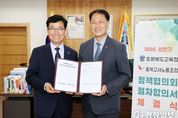 광장일보 이현나 기자 | 충청북도교육청은 24일 오후 4시, 교육감 집무실에서 충북교사노동조합(위원장 유윤식)과 '2026. 상반기 정책협의회 절차합의서'를 체결했다. 이날 체결식에는 윤건영 교육감과 교육청 관계자, 충북교사노동조합 유윤식 위원장을 비롯해 노조 집행부 관계자들이 참석해 상호 신뢰를 바탕으로 한 정책 협력 의지를 확인했다. 이번 체결은 2020년 체결한 단체협약에 근거해 추진됐으며, 교육 현장의 의견을 반영한 실효성 있는 정책 발굴과 제도 개선을 위한 협의의 출발점이라는 데 의미가 있다. 정책협의 주요 내용은 ▲교권 보호 및 향상 ▲교원 인사 및 근무환경 개선 ▲업무 효율화 ▲상담‧영양‧특수교사 교권 및 업무 개선 등 총 45건의 안건에 대한 절차합의로 구성됐다. 절차합의서는 총 14개 조항으로 ▲합의서의 목적 ▲협의 당사자 정의 ▲협의 운영방법 ▲협의 안건 및 절차 ▲협의 일정 조정 ▲위원 구성 ▲협의 진행 방식 ▲합의서 작성 및 해석 등에 관한 사항을 담고 있다. 충청북도교육청과 충북교사노동조합은 이번 절차합의서 체결을 시작으로 본격적인 정책협의에 착수할 예정이다. &