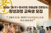 광장일보 주재영 기자 | 재단법인 영주한국효문화진흥원은 효(孝) 문화의 전문적인 확산을 위해 4월 3일부터 5월 1일까지 ‘효(孝)-정서지도 마음살핌 전문강사’ 양성과정 교육생을 모집한다. 이번 교육과정은 현대사회에서 요구되는 정서지도와 인성교육을 기반으로, 효(孝) 가치를 실천적으로 전달할 수 있는 전문강사를 양성하기 위해 마련됐다. 특히 이론과 실습을 병행한 교육을 통해 현장 적용 능력을 갖춘 인재 양성에 중점을 두고 있다. 교육은 5월부터 10월까지 6개월간 매주 화·목요일 운영되며, 총 84시간의 이론교육과 2회의 현장실습으로 구성된다. 모집 인원은 25명으로, 평생교육사, 교사, 활동가 등 효문화 전파와 인성교육에 관심과 열정을 가진 시민이라면 누구나 신청할 수 있다. 교육 신청은 영주한국효문화진흥원 홈페이지에 게시된 신청서를 작성한 후 방문 또는 이메일로 접수하면 된다. 자세한 내용은 진흥원 홈페이지 공지사항을 참고하거나, 재단법인 영주한국효문화진흥원으로 문의하면 된다. 박찬극 원장은 “이번 전문강사 양성과정을 통해 효(孝) 문화를 체계적으로 이해하고