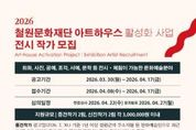 광장일보 이현나 기자 | (재)철원문화재단은 2026년 아트하우스 전시에 참여할 작가를 오는 4월 8일부터 17일까지 공개 모집한다. 이번 공모는 단순히 작품을 전시하는 형식을 넘어, 전시 공간에서의 관람 경험, 체험 프로그램, 도슨트 운영까지 작가와 함께 만들어가는 전시로 운영될 예정이다. 아트하우스는 지역 주민과 방문객이 일상 속에서 자연스럽게 예술을 경험할 수 있도록 조성된 문화예술 공간으로, 2026년에는 공모전시 4회와 기획전시 2회를 운영할 예정이며, 지난해에는 공모전시 3회와 대관전시 3회를 진행하는 등 다양한 전시와 체험 프로그램을 통해 생활 밀착형 예술 향유 기회를 꾸준히 제공해왔다. 이번 공모를 통해 선정된 작가는 전시 기간 동안 작품 설치 및 철수, 공간 구성, 관람 동선 기획, 관람객 대상 체험 프로그램(해당 시), 도슨트 운영 협력, 홍보 협조 등 전시 전반의 운영 과정에 참여하게 된다. 철원문화재단 박현웅 본부장은 “이번 공모는 전시 결과물뿐 아니라 전시가 운영되는 전 과정을 작가와 함께 만들어가는 협력 프로젝트로, 작가의 창작활동을 적극 지원하는 데 중점을 두고 있다”며