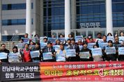 광장일보 주재영 기자 | 전남대학교 교수·학생·교직원·동문이 5·18민중항쟁의 헌법 전문 수록을 민주주의의 출발점을 바로 세우는 문제로 규정하고, 초당적 개헌 추진을 촉구했다. 23일 전남대학교에 따르면, 전남대학교 구성원단체(교수·학생·교직원·졸업생)는 이날 오후 2시 전남대학교 민주마루 앞에서 '5·18 민중항쟁의 헌법 전문 수록에 여야는 초당적으로 동참하라'는 공동 기자회견을 개최했다. 이날 참석자들은 5·18 정신의 헌법 전문 수록을 위한 국회의 개헌안 의결과, 오는 6월 지방선거와 연계한 개헌 국민투표 추진을 앞둔 상황에서 여야의 초당적 결단이 필요하다고 강조했다. 참석자들은 특히 헌법과 헌법 전문의 의미를 짚으며, 이번 개헌의 본질을 ‘정체성의 복원’으로 규정했다. 헌법이 국가 운영의 원칙을 제시하는 규범이라면, 헌법 전문은 그 원칙이 어디에서 비롯됐는지를 밝히는 선언이자 대한민국 민주주의의 뿌리를 설명하는 출발점이라는 설명이다. 또한 현행 헌법 전문이 1987년 개정 당시의 역사적 한계로 인해 5·18민중항쟁의 정신을 담아내지 못했다고 지적하며, 이번 개헌은 그 미완의 과제를 바로잡는