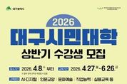 광장일보 주재영 기자 | 대구광역시는 시민의 평생학습 기회를 확대하고 변화하는 학습 수요를 반영해 4월 8일부터 ‘2026년 상반기 대구시민대학’ 수강생을 모집한다. 이번 상반기 시민대학은 4월 27일부터 6월 26일까지 약 2개월간 운영되며, 시민이 직접 제안한 21개 강의와 5개 기획 강의 등 총 26개 강좌로 구성됐다. 강좌는 인공지능(AI)·디지털, 인문교양, 문화예술, 직업능력, 실용교육 등 시민의 일상과 밀접한 다양한 분야를 아우르며, 참여형·체험형 교육을 강화해 실질적인 학습 효과를 높였다. 주요 강좌로는 ▲AI와 함께하는 나만의 인생 영상 ▲신중년 경력 설계 수립의 다양한 사례 이해 ▲백세시대의 자연치유 건강법 ▲색연필 보타니컬아트 ▲생활 속 아로마테라피 DIY 클래스 등이 있다. 특히 올해는 강좌별 운영 횟수를 기존 3회에서 5회로 확대해 학습의 연속성을 높이고, AI 대전환 흐름에 맞춰 관련 강좌를 기초·심화 단계로 세분화해 수준별 맞춤 교육이 가능하도록 설계했다. 또한 교육 장소를 대구평생교육진흥원 대구지식발전소(북구 연암로 40, 산격청사)뿐 아니라 외부 교육장