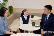 광장일보 주재영 기자 | 전라남도의회 박문옥 의회운영위원장(더불어민주당·목포3)은 지난 9월 25일 장애인재활시설인 목포시 명도복지관을 방문해 라이안 제라딘 수녀를 만나 위문 물품을 전달했다. 1992년 개관한 명도복지관의 관장을 지낸 라이안 수녀는 ‘발달장애인의 어머니’라고 불리며, 사회복지가 열악했던 전남 목포 지역에 발달장애인 복지의 길을 처음 열었으며, 그 헌신은 지역사회의 큰 귀감이 되고 있다. 이날 대화에서 박 위원장이 타국 생활의 어려움을 묻자, 라이안 수녀는 “모르니까 재미있다”며 웃으며 답했다. 이어 1975년 처음 한국 땅을 밟았을 당시 한 시민이 자신의 팔을 잡고 “사람이 맞냐”고 물었던 일화를 회상하며 주위를 웃음 짓게 했다. 또한 라이안 수녀는 “대한민국 공무원들이 사회복지를 위해 열심히 노력하고 있다는 점은 잘 알고 있지만, 서류 위주의 행정으로 인해 정작 마음을 세심히 살피지 못하는 현실이 안타깝다”고 말했다. 이에 박 위원장은 “월 급여가 직책급을 포함해 약 70만 원이신데, 그중 휴대전화 요금 등 최소한의 생활비를 제외한 나머지를 기부하신다고 들었다”며