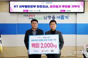 광장일보 주재영 기자 | 인천시 남동구는 최근 KT 서부법인본부 인천지사로부터 취약계층을 위한 백미 10kg 200포를 기탁받았다고 17일 밝혔다. 이번 쌀 나눔에서는 임직원 240명이 참여한 ‘완밥식당’프로그램을 통해 적극적으로 이뤄졌으며, 지역 사회와 상생하는 ESG 경영을 일환으로 추진됐다. 기탁된 백미는 경제적 어려움을 겪고 있는 사회복지시설 및 동 행정복지센터로 전달됐다. 김상철 지사장은 “지역 사회와 함께 성장하는 기업으로서 작은 정성으로 이웃들에게 도움이 되기를 바라며 KT 임직원들과 함께 마음을 모았다”라며 “이번 나눔이 더 많은 이웃에게 용기와 위로가 전해지길 희망한다”라고 밝혔다. 박종효 남동구청장은 “지역의 어려운 이웃을 위해 쌀 나눔 행사를 해주신 KT 임원분들께 깊이 감사드린다”라며 “후원품은 도움이 필요한 분들께 정성껏 전달해 모두가 함께하는 따뜻한 남동구를 만드는 데 소중히 사용하겠다”라고 말했다.