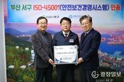 광장일보 주재영 기자 | 부산 서구는 국제 인증 심사기관인 KSR인증원으로부터 국제 표준 안전보건경영시스템(ISO45001) 인증을 획득해 지난 29일 오후 2시 30분 인증서 수여식을 가졌다. ISO45001은 국제표준화기구(ISO)와 국제노동기구(ILO)가 2018년에 제정한 안전보건경영시스템으로 산업재해 예방과 안전한 작업환경 조성을 위한 안전보건관리체계가 국제적 수준에 도달한 기관에 부여하는 국제인증이다. 서구는 외부 전문기관과 합동 위험성 평가를 기반으로 월별 점검 체계를 운영하고 공학적 개선 조치를 시행한 점, 연간 종합계획에 따른 성과측정 및 모니터링 등으로 ISO에서 요구하는 P-D-C-A 기반 선순환 구조가 안정적으로 운영되고 있는 점 등을 인정받았다. 서구는 그동안 근로자와 시민 모두의 안전을 최우선 가치로 삼고 안전보건관리체계 구축을 위해 매뉴얼 제정, 현장 작업환경 점검, 위험성 평가, 내부 심사 등 안전 보건 관리 전 과정을 단계적으로 점검해 현장의 안전관리 수준을 대폭 향상시키며 인증 심사에 대비해 왔다. 공한수 구청장은 “ISO45001 인증은 법적 요구 수준을 충족하는