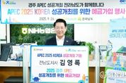 광장일보 주재영 기자 | 김영록 전라남도지사는 26일 APEC 정상회의 성공적 개최를 기원하고 영호남 상생협력을 위해 ‘APEC 성공 기원 특별예금’ 가입 릴레이 캠페인에 참여했다. 이번 특별예금은 APEC 정상회의 성공을 응원하는 전 국민 참여형 금융상품으로, 가입 기간은 1년이다. 1인당 100만 원 이상 3천만 원 이내에서 가입할 수 있다. 김영록 지사는 이날 NH농협은행 전남도청지점을 방문해 예금에 가입하고, “APEC 정상회의의 성공적 개최를 진심으로 응원한다”며 “앞으로도 다양한 분야에서 영호남 상생협력을 적극 추진하겠다”고 말했다. 김영록 지사의 예금 가입은 개최지인 경상북도를 제외한 전국 광역지자체장 최초로, 타 지자체장들의 가입 릴레이 참여 분위기를 조성하는 데 기여할 것으로 기대된다.