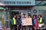 광장일보 주재영 기자 | 의정부시 의정부2동주민센터는 12월 17일 의정부2동 지역사회보장협의체가 ‘100일간 사랑릴레이 배턴 잇기’에 동참해 취약계층을 위한 성금 20만 원을 전달했다고 밝혔다. 협의체는 올겨울에도 지역사회 돌봄을 강화하기 위한 의미 있는 걸음을 이어갔다. ‘겨울나기 지원’이 필요한 가구를 위해 온기 나눔 패딩을 전달하고 성금을 마련해 지원하는 등, 한 해의 마무리를 지역과의 상생으로 채웠다. 지명준 위원장은 “이번 성금이 어려움을 겪는 가정에 작은 보탬이 되길 바란다”며 “앞으로도 협의체가 지역사회와의 연결고리 역할을 충실히 수행하도록 최선을 다하겠다”고 전했다. 조미경 동장은 “연말을 맞아 ‘100일간 사랑릴레이 배턴 잇기’에 동참해주신 지역사회보장협의체에 감사드린다”며 “전달받은 성금은 지원이 필요한 분들을 위해 소중히 사용하겠다”고 말했다.