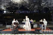 광장일보 주재영 기자 | 제64회 경북도민체육대회 개최를 기념해 예천군이 마련한 ‘개심사지 벚꽃 버스킹’이 4월 4일과 5일 이틀간 예천읍 개심사지 오층석탑 일원에서 성황리에 열렸다. 만개한 벚꽃이 조명을 받아 밝게 빛나는 야경 속에서 오후 7시부터 8시까지 진행된 이번 공연에는 연일 수백 명의 주민과 관광객이 몰렸다. 관람객들은 빈백 의자에 앉아 봄 저녁의 여유를 즐기며 공연을 감상했다. 행사장에는 대형 달 조형물과 토끼 조형물이 설치되고, 잔디밭을 따라 물결처럼 이어진 전구 스트링 조명이 공간을 은은하게 밝히며 개심사지 일대를 감성적인 분위기로 연출했다. 이번 공연에는 국내 1세대 퓨전 국악 밴드 ‘프로젝트 락’이 출연해 해금·피리·대금 등 전통 국악기와 밴드 사운드를 결합한 독창적인 무대를 선보였다. 첫날 ‘화연(花宴), 봄을 열다’ 공연은 한복을 입은 보컬의 판소리와 현대적 가창이 벚꽃 야경과 어우러져 잔잔한 감동을 전했고, 둘째 날 ‘풍류난장(風流亂場), 흥을 깨우다’ 무대는 관객 참여와 즉흥 연주를 통해 활기찬 분위기를 이끌어냈다. 행사장에는 도민체전을 찾은 타 시·군 방문객