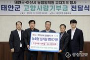 광장일보 주재영 기자 | 고향사랑기부제 활성화에 앞장서고 있는 NH농협이 태안군과 아산시 간 고향사랑기부금 상호기부에 나서 지역사회에 따뜻한 감동을 선사했다. 태안군에 따르면, 농협 아산시지부는 지난 21일 태안군청 중회의실에서 ‘태안군·아산시 농협 임직원 고향사랑기부금 전달 행사’를 갖고 총 5310만 원의 고향사랑기부금을 태안군에 전달했다. 이날 전달 행사에는 가세로 태안군수를 비롯해 농협 아산시지부 이규황 지부장과 아산시조합운영협의회 김명규 의장, 태안군지부 윤희철 지부장, 태안군조합운영협의회 조한민 의장 등 양 지자체 농협 관계자 총 17명이 참석해 자리를 빛냈다. 이번 상호기부는 고향사랑기부제의 활성화와 성공적인 정착을 도모하기 위한 것으로, 농협 태안군지부와 아산시지부는 지난해부터 고향사랑기부금 교차 기부에 나서왔으며 올해 농협 태안군지부도 아산시에 2800만 원의 고향사랑기부금을 전달한 바 있다. 농협 아산시지부 이규황 지부장은 “고향사랑기부제를 통해 태안군의 발전에 힘을 보태고자 지난해에 이어 올해도 고향사랑기부금을 전달하게 됐다”며 “더욱 비상하는 태안군을 아산시민들도 함께 응원하겠
