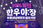 광장일보 주재영 기자 | 남해군은 연말을 맞아 오는 12월 17일부터 20일까지 4일간, 매일 오후 5시부터 9시까지 남해축협 본소 주차장에서 ‘한우야:장(보물섬남해한우 셀프식당)’을 운영한다고 밝혔다. 이번 행사는 얼마 전 군민과 상인들의 뜨거운 호응 속에 마무리된 ‘남해의 맛 – 화전야:장(花田夜:場)’의 열기를 이어받아 군민들에게 겨울밤, 야외 테이블에서 프리미엄 한우 코스를 즐길 수 있는 특별한 경험을 제공하기 위해 마련됐다. 행사 기간 동안 마트에서 100g당 17,000원~13,100원에 판매되는 1++, 1+ 등급 보물섬남해한우(등심, 안심 및 특수부위)를 30% 할인된 가격으로 현장에서 구워 먹을 수 있다. 한편, 예로부터 우리 민족은 겨울철에 쇠고기를 즐겨 먹었는데 음력 10월이면 숯불을 지핀 화로에 번철을 놓고 양념한 쇠고기와 여러 재료를 함께 구워 둘러앉아 나누던 풍속인 난로회(煖爐會)가 있었으며, '열하일기'를 집필한 연암 박지원은 “겨울철 눈 오는 날, 친구를 불러 고기를 구워 먹으니 신선이 사는 곳이 부럽지 않다”고 기록했다.